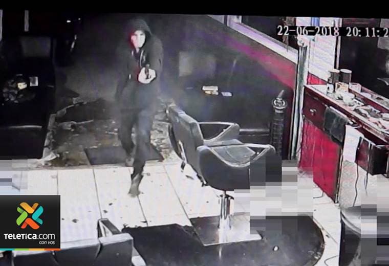 En el primer vídeo se observa a un hombre que ingresó disparando en una peluquería ubicada en el centro de Tibás.