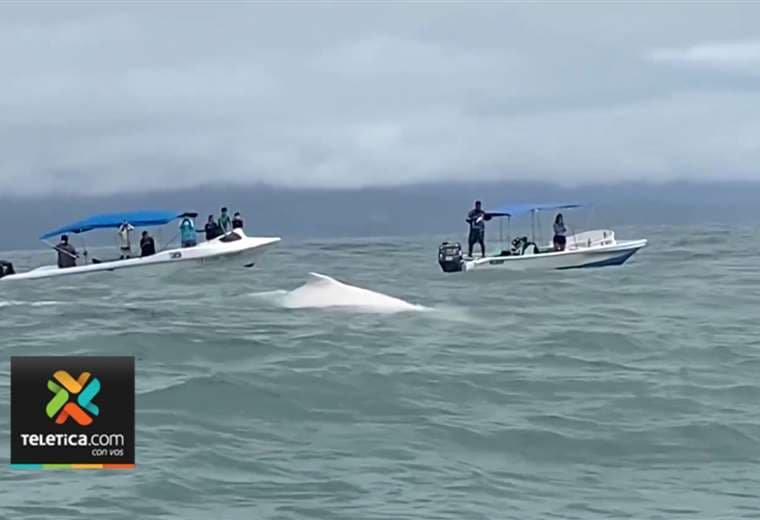 Se trata del avistamiento de una ballena albina. Las imágenes las captó el colaborador de Telenoticias, Rónald Badilla.