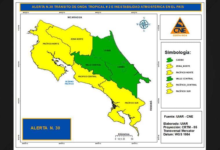 Por su parte, las autoridades decidieron emitir alerta verde para el Caribe y el Valle Central (ver mapa adjunto).