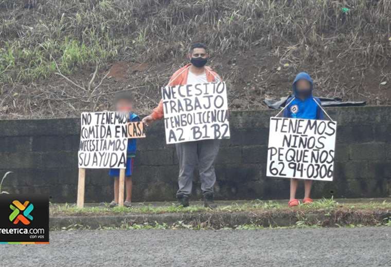 Con dos carteles, un papá desesperado y sus dos hijos pequeños salieron a las calles de San Luis de Upala, Alajuela, para pedir ayuda.