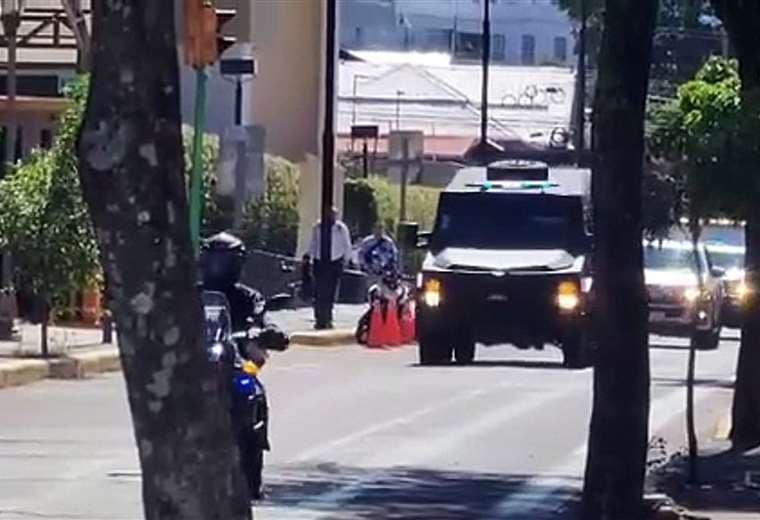 Nuevamente, un poderoso contingente de oficiales del Organismo de Investigación Judicial (OIJ) se encargó de llevarlo desde el Centro de Atención Institucional Jorge Arturo Montero, en San Rafael de Alajuela, hasta la sede judicial, en el centro de la capital.