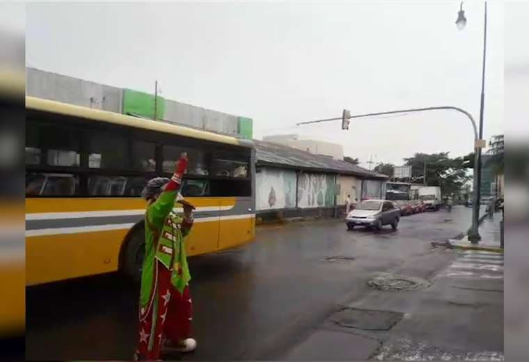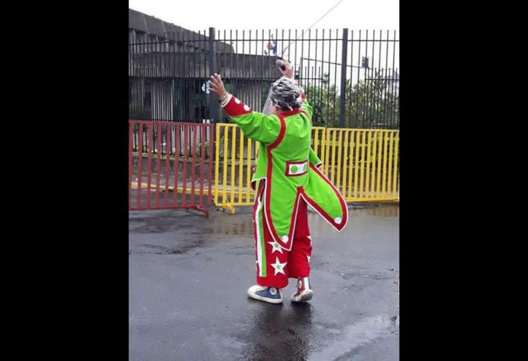 Según el payaso "Puchito", vio al jerarca triste y cansado, por eso decidió llevar a cabo esta iniciativa: fue con un parlante y un micrófono y se estacionó afuera del lugar donde se realiza la conferencia de prensa.