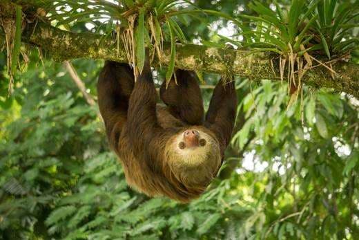 Una perezosa adulta, de dos dedos, viajó 65 kilómetros dentro del motor de un camión y resultó completamente ilesa.