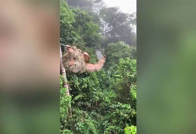 "Lo que pasó fue que en cuestión de 30 segundos creemos que el perezoso cayó al cable desde una rama. Ya habían pasado cinco personas y no había nada, 30 segundos después y el perezoso estaba en el cable", indicó Leitón.