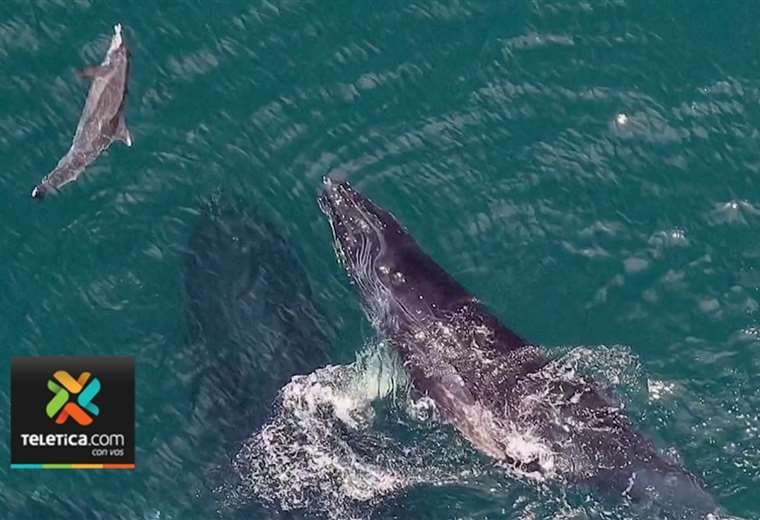 Chávez pudo captar una ballena jorobada junto con su cría y un delfín en playa Nicoya, Guanacaste.