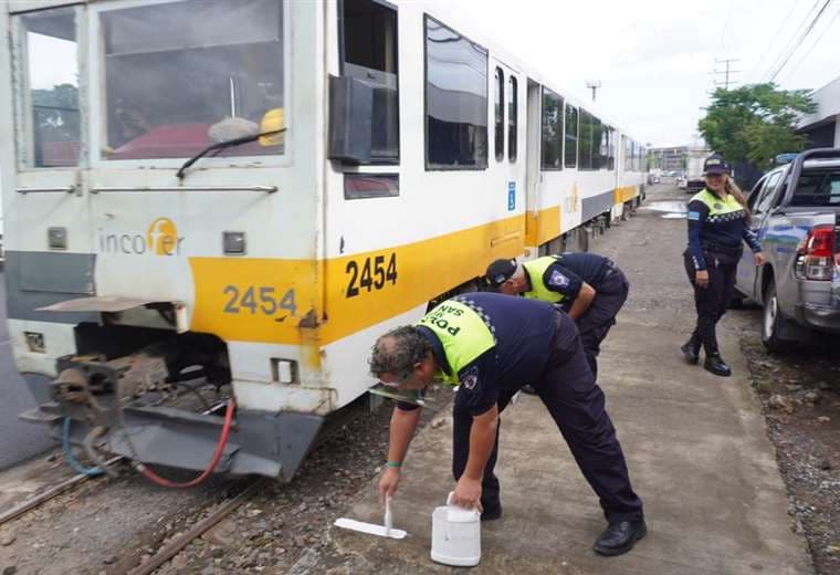La Policía Municipal de San José inició este martes con la demarcación de distancia en las paradas del tren.