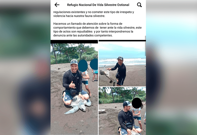 El Refugio Nacional de Vida Silvestre Ostional repudió en su cuenta oficial de Facebook, este sábado, los actos cometidos por un supuesto visitante, quien se sentó sobre una tortuga lora y la manipuló en contra de la ley.