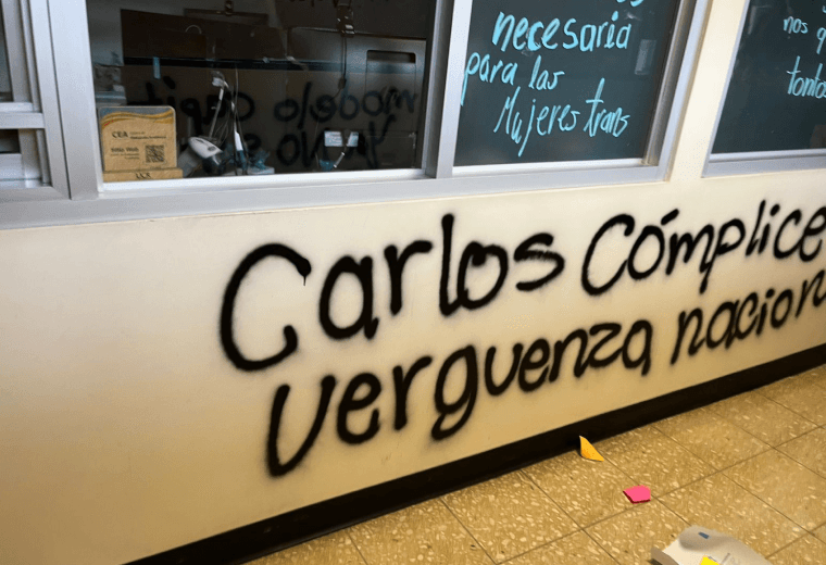 Quiebran vidrios y rayan paredes: estudiantes causan destrozos en Rectoría UCR