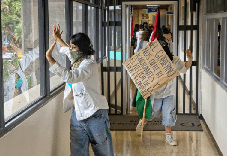 La institución señaló que, tras la solicitud de salida del rector, este acudió al lugar con el objetivo de escuchar al estudiantado, pero las condiciones impidieron un diálogo adecuado. Posteriormente, se produjo el ingreso violento al edificio, situación que mantiene a un grupo de alumnos dentro de las instalaciones.