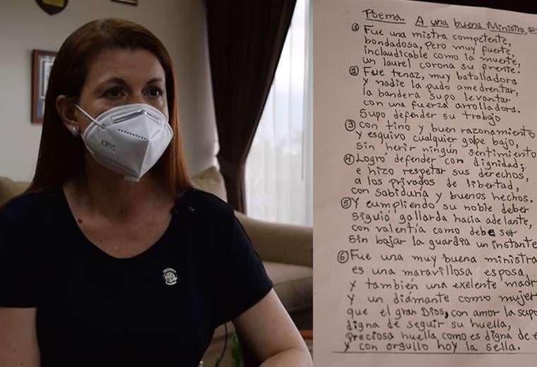 “Tengo un poema que está en este momento en mi despacho, donde hablan de Fiorella como la ministra, como la mujer e, incluso, mencionan mi papel de madre. Son sentimientos muy lindos que nacen de la visión del mundo que tienen ellos (privados de libertad) y de cómo me ven”, dijo Salazar.