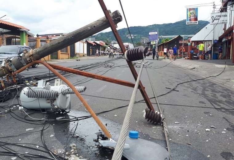 La institución convocó a dos equipos de trabajo y otros dos de grúa, unas 18 personas. Los postes quebrados tenían "líneas de media tensión trifásica, líneas de baja tensión - secundaria y líneas de comunicaciones".