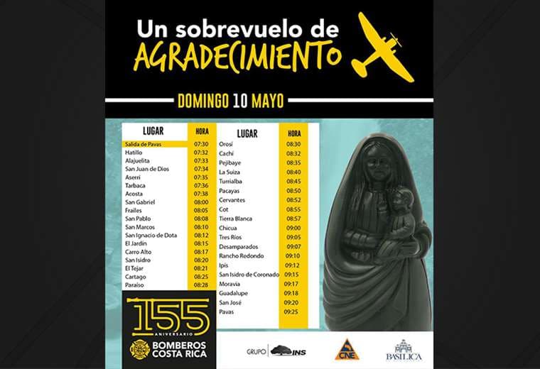 Por segundo día consecutivo, la Virgen de los Ángeles sobrevoló este domingo varias localidades de Costa Rica.