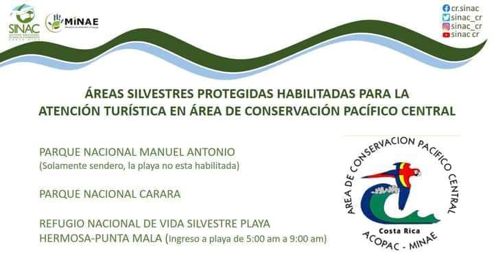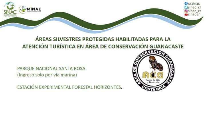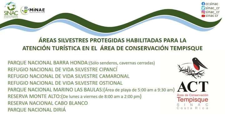La lista de Parques Nacionales que ya estaban abiertos es la siguiente: Parque Nacional Barra Honda, Refugio Nacional de Vida Silvestre Cipancí, Refugio Nacional de Vida Silvestre Camaronal, Refugio Nacional de Vida Silvestre Ostional, Parque Nacional Marino las Baulas, Reserva Monte Alto, Reserva Nacional Cabo Blanco, Parque Nacional Diriá.