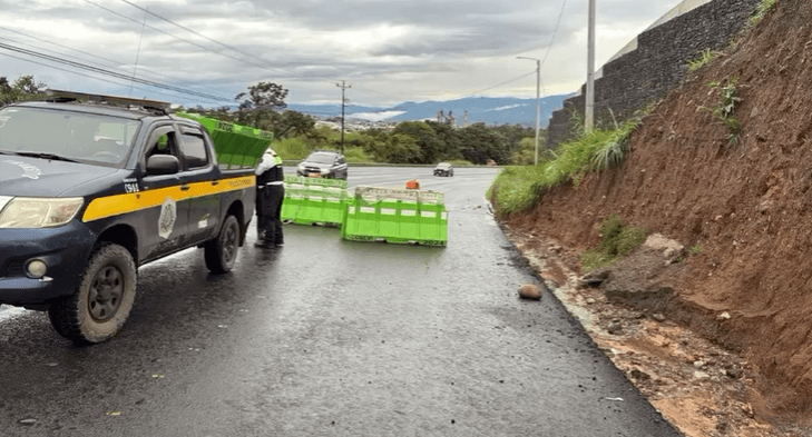 “Llamar a la calma a la población. Lo que sucedió es que el material que está a la espalda del muro de retención del carril que va en sentido hacia Cartago, por la saturación de los suelos con las lluvias de los últimos días, cayó.