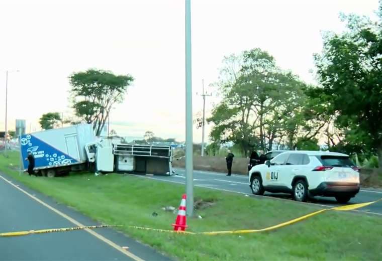 Agentes del Organismo de Investigación Judicial (OIJ) trabajan en la recolección de indicios para la pesquisa con la que deberán dilucidar las circunstancias que mediaron en el choque entre dos camiones, el cual dejó un muerto.