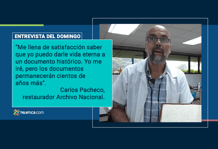 Pacheco es el restaurador del Archivo Nacional, institución que desde 1881 resguarda a perpetuidad todos los documentos legales que se han escrito y se escribirán en el territorio nacional; él tiene 42 años de ser “el doctor de los papeles”, según lo describen sus amigos.