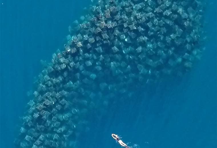 Se trata de mantas mobulas, mantas, gigantes, rayas diablo, tiburones y hasta pez dorado, especie que no es común ver.