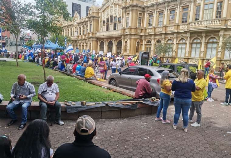 La concentración inició a las 9 a. m. en el Parque Central. Luego, todos los asistentes caminaron por la Avenida Segunda con rumbo a la Plaza de la Democracia, muy cerca de la Asamblea Legislativa, donde hoy se realizaba la elección del nuevo directorio.