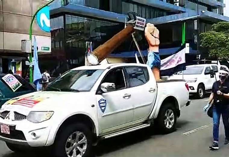La Asociación Nacional de Educadores Costarricenses (ANDE), la Asociación de Profesores de Segunda Enseñanza (APSE) y otros grupos forman parte de la protesta que se realiza en vehículos, para acatar las disposiciones sanitarias.