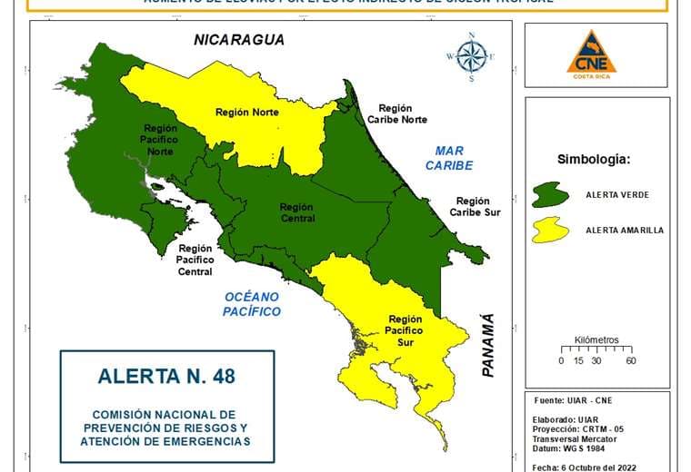 Los efectos sobre el país serían indirectos, lo que implica que el Pacífico Sur tendría lluvias persistentes. La alerta amarilla también incluye a la Zona Norte. El resto del territorio tiene alerta verde, aunque las autoridades de la Comisión Nacional de Emergencias (CNE) reiteran a la población que debe de estar atenta a cualquier cambio que se comunique en las próximas horas.