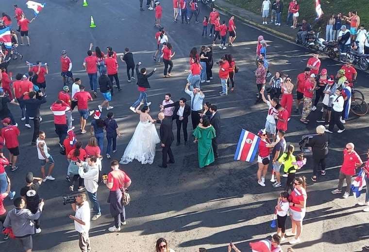 Luisana quien es de Curridabat, llegó con el traje de novia y, su novio, de Cartago, andaba muy bien apuntado festejando con el vestido entero que utilizó durante la ceremonia la cual se realizó en la Iglesia de La Soledad que se ubica muy cerca del Barrio Chino en la capital.