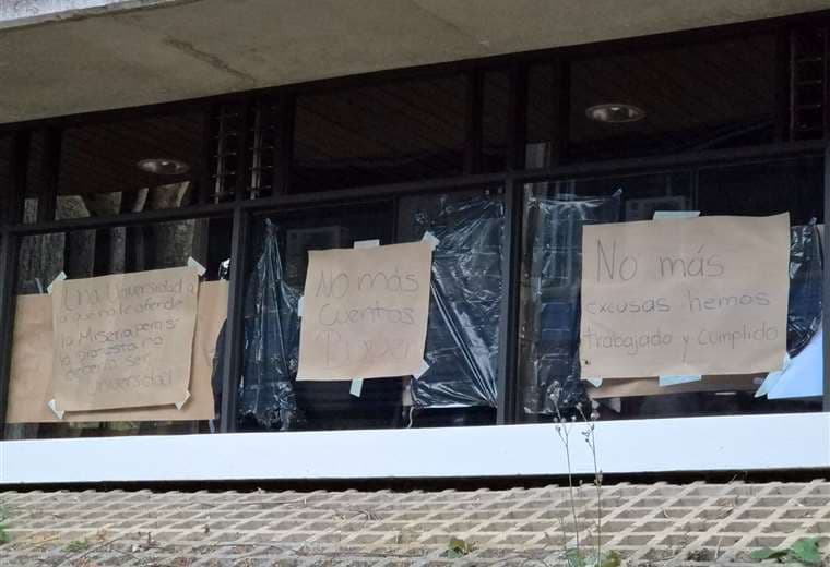 Un equipo de Telenoticias constató que el edificio está tomado y no hay autoridades universitarias en los alrededores. Solo dejan ingresar a alumnos y las puertas y ventanas continúan cerradas, con bolsas negras y carteles.