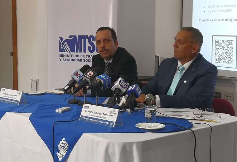 Así lo dieron a conocer, en conferencia de prensa, el viceministro del Área Laboral, Wálter Villalobos, y el coordinador de todos los aspectos relacionados con el aguinaldo, Francisco Quesada.