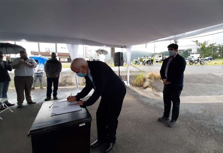 En la firma a dempas del mandatario estuvo presente el ministro de Obras Públicas y Transportes (MOPT), Rodolfo Méndez Mata, y representantes del Consorcio H Solís-Estrella, encargados de las obras.