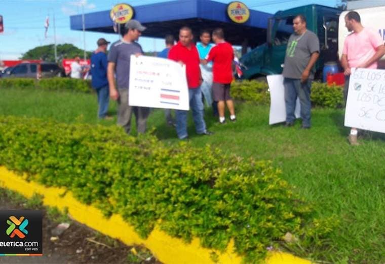 Un grupo de 20 traileros del Sindicato Nacional de Traileros-Seccional Asociación Nacional de Empleados Públicos y Privados (ANEP) empezó agruparse en las inmediaciones del peaje de Naranjo sobre ruta 1, con la intención de salir en caravana hacia el sector del Aeropuerto Internacional Juan Santamaría a eso de las 8:30 a. m.