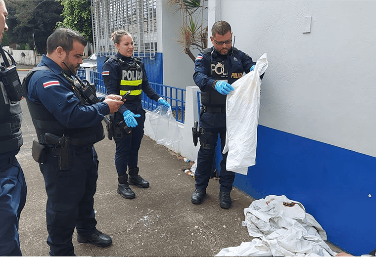 Las prendas con insignias oficiales fueron recuperadas por la Fuerza Pública, este martes, en las cercanías de los Tribunales de Justicia de San José. Un indigente vestía una de las camisas y tenía varias más en su poder.