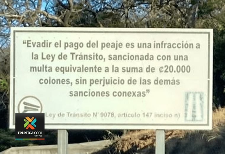 En la zona hay un rótulo que dice lo siguiente: “evadir el pago del peaje es una infracción a la Ley de Tránsito, sancionada con una multa equivalente a la suma de ₡20.000, sin perjuicio de las demás sanciones conexas”, artículo 147, inciso n.