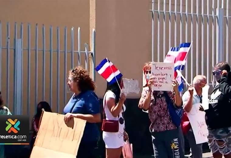 Con carteles y banderas, al menos unos 50 vendedores de lotería protestaron la mañana de este miércoles frente a la sede central de la Junta de Protección Social (JPS) en San José.