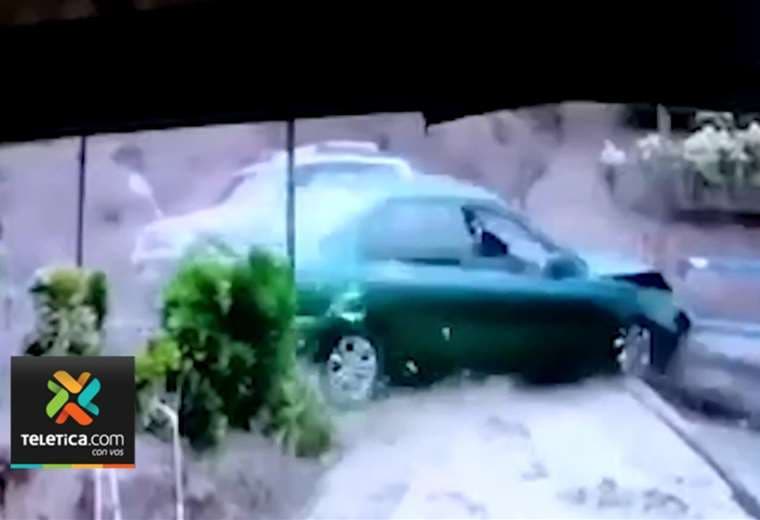 Una cámara de seguridad captó el momento en el que un carro realiza un adelantamiento indebido y provoca un fuerte accidente en Alajuela.