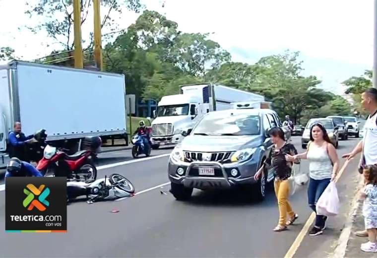Las imágenes tomadas por este medio muestran cómo la moto queda en el suelo, luego de ser impactada por detrás por el otro automotor, instantes después de que el oficial le da señal de alto para que una adulta mayor y una familia pudieran cruzar la concurrida Ruta Nacional 39. El hecho se dio en el sentido Hatillo-Zapote, en San José.
