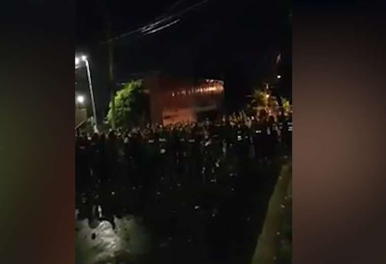 Video: Antimotines y manifestantes cantan el Himno Nacional