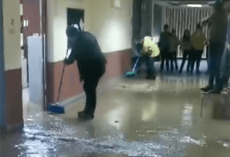 Varios videos muestran cómo las condiciones anegaron los pasillos del centro educativo. Ahí, con escobas, el personal de la institución trató de sacar el agua que ingresó por la emergencia (ver imágenes adjuntas).