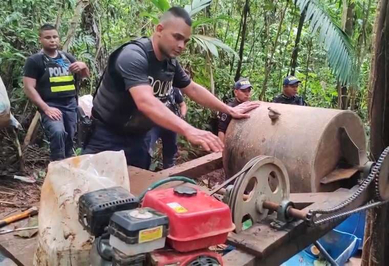 El miércoles anterior, un grupo de la Fuerza Pública logró ubicar uno de los campamentos donde estos oreros trabajan. La toma del lugar fue tan sorpresiva que los trabajadores no pudieron sacar este sistema e, incluso, fue posible ponerlo a funcionar, algo poco común entre los campamentos.
