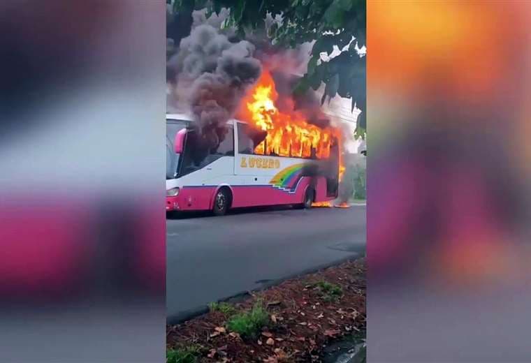Video: Bus que transportaba pasajeros prende fuego en San Carlos
