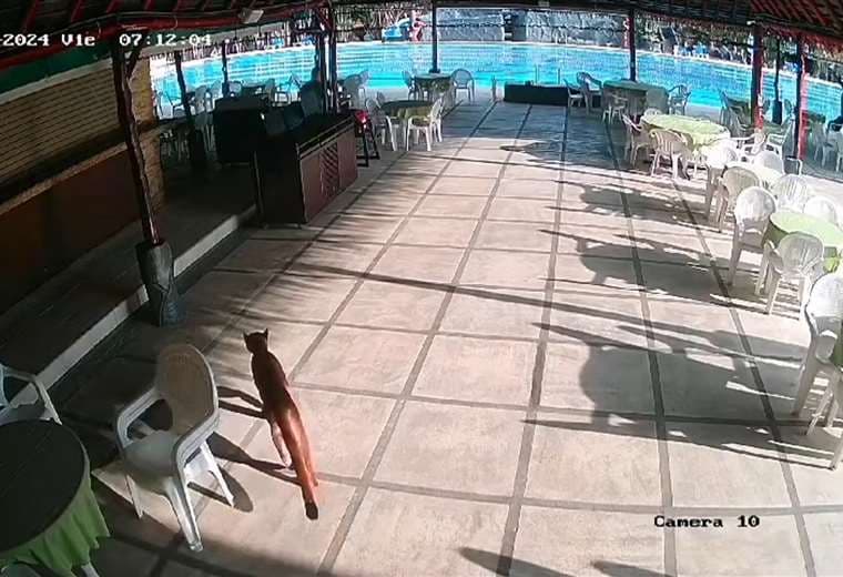 Las impactantes imágenes, compartidas con Teletica.com, muestran cómo el personal del hotel estaba presente en el lugar minutos antes del avistamiento. El felino aprovechó la oportunidad para pasearse tranquilamente por el área de las mesas y la piscina del hotel, como si fuera su propio territorio.