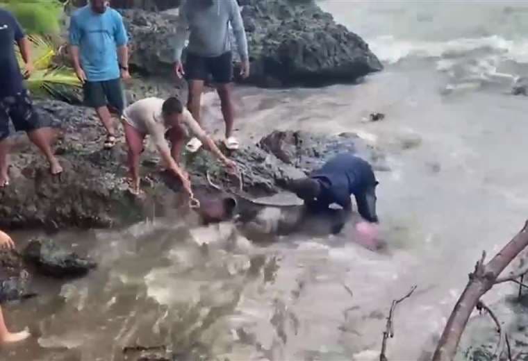 "El pobre animal pasó muchas horas atrapado, luchando por su vida. La comunidad de Bahía Drake, junto con operadoras turísticas y vecinos, unieron fuerzas para sacarla de las rocas y llevarlo a un lugar seco, donde finalmente pudo recibir atención médica”, dijo Quirós.
