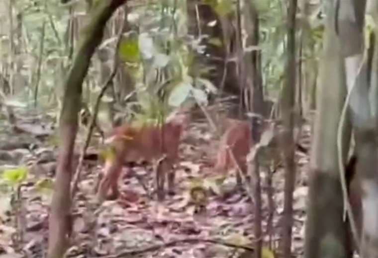 Dos pumas sorprendieron a turistas en Corcovado. La grabación realizada por el guía se muestra el movimiento de ambos felinos (ver video adjunto de Telenoticias).
