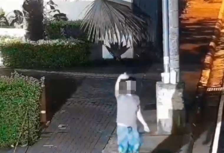 Inclusive, las imágenes captan al sujeto intentando dañar la videoprotección al lanzar una piedra.