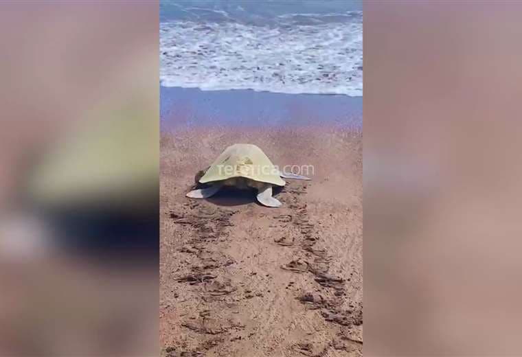 Video: Impresionante tortuga Lora sorprende a turistas en playa Jacó a plena luz del día