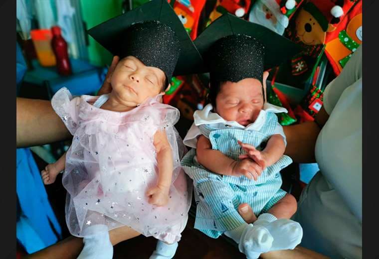 Ambos nacieron prematuros y estuvieron internados varias semanas, sin embargo, hoy fueron egresados del Hospital Monseñor Sanabria con un acto de "graduación".