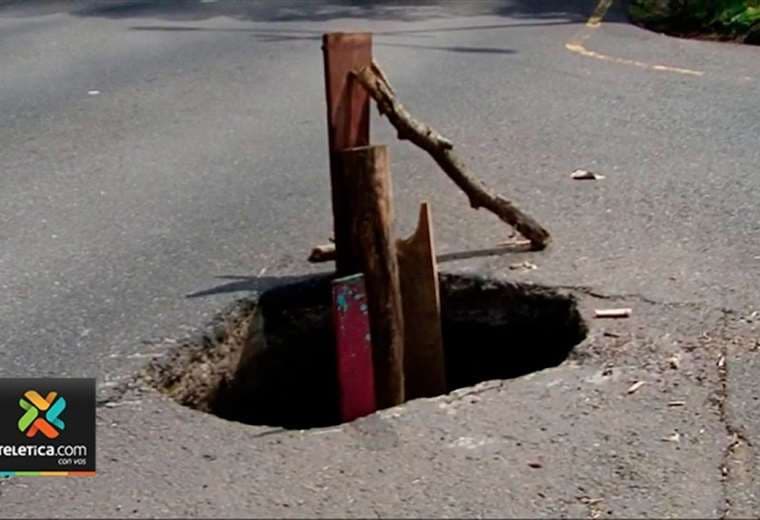 Video: palos y tablas advierten a choferes sobre hueco en La Sabana