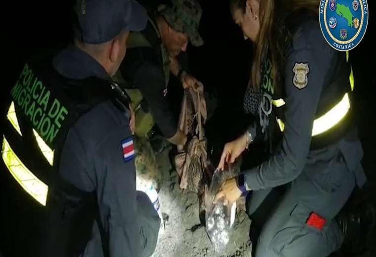 Miembros de la Policía de Fronteras y la Policía Profesional de Migración se toparon con la tortuga marina mientras patrullaban por el Refugio Nacional de Vida Silvestre Gandoca-Manzanillo.