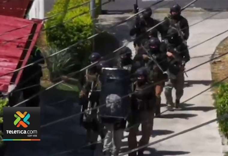 Un video de Telenoticias muestra el momento en el que dos sujetos, quienes son sospechosos de asesinar a un hombre de 29 años en San Francisco de Heredia, salieron de la casa donde estuvieron atrincherados por varias horas.