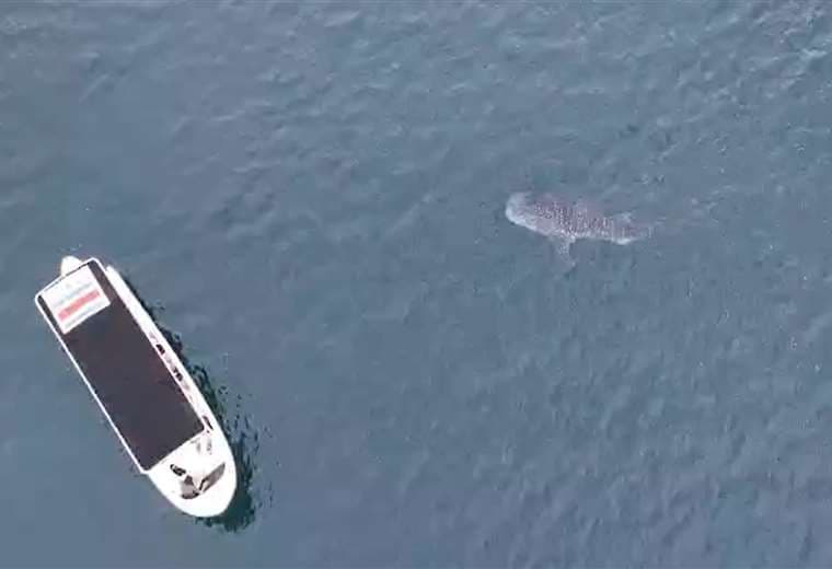 Un tiburón ballena de aproximadamente ocho metros sorprendió a un grupo de turistas en Golfito, mientras realizaban un tour de avistamiento de ballenas.