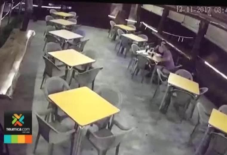 En el primer video se observa cuando el conocido presentador de su canal 7, Choché Romano y su esposa Ashley García fueron sorprendidos en un restaurante de Jacó. La reacción de ambos fue salir corriendo.