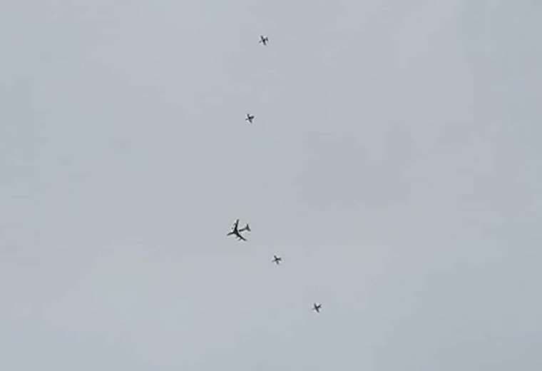 Este sábado trascendió en redes sociales fotografías de un avión que parecía ser escoltado por otras cuatro aeronaves. La imagen provocó inquietud entre los usuarios, quienes pensaron que se podía tratar de un sobrevuelo militar.